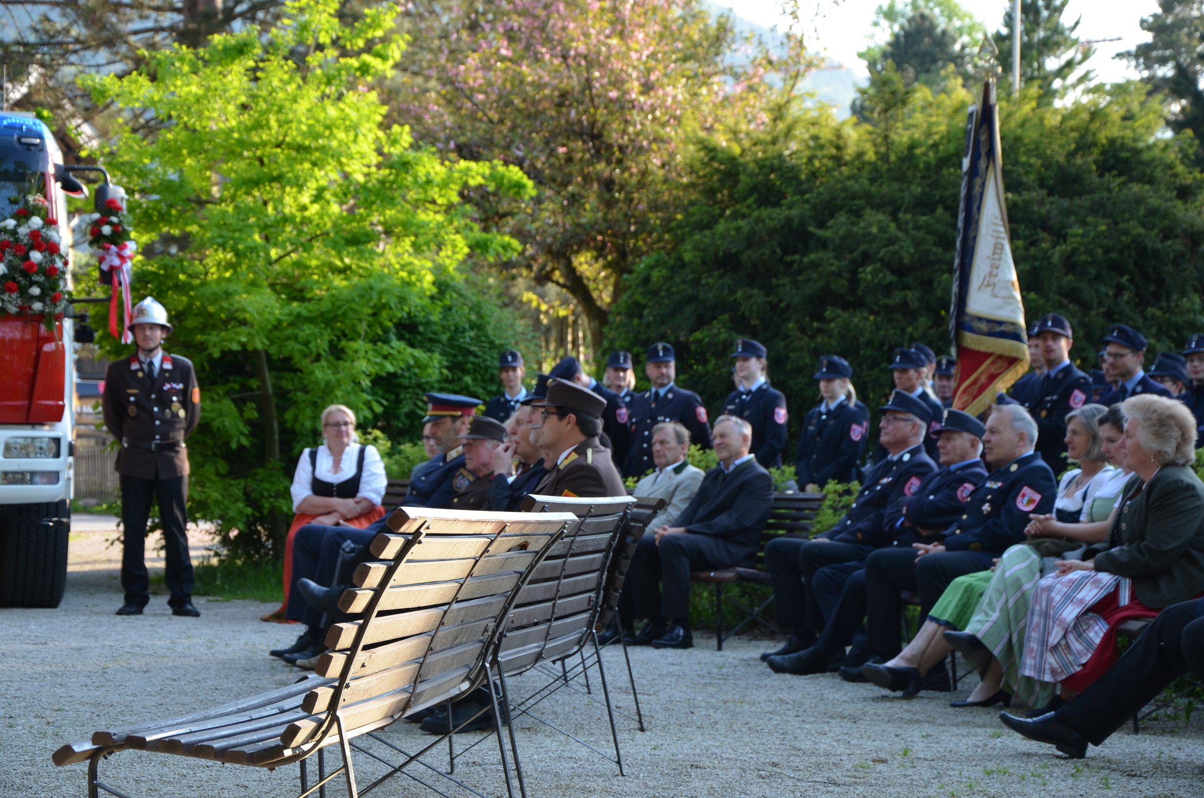 Unser Feuerwehrkurat Herbert Schmatzberger zelebrierte die Florianimesse und segnete unser neues Löschfahrzeug. OFK Markus Fallenegger begrüßte alle Anwesenden, sprach über die aussergewöhnlichen Ereignisse während dieser pandemischen Zeit und dankte den Mitgliedern der Feuerwehr für ihr Mitragen der Maßnahmen und Durchhaltevermögen zur Aufrechterhaltung der Einsatzbereitschaft. Mit BFK OBR Klaus Lugstein und Bgm. ÖkR Sebastian Schönbuchner konnte er zahlreiche Mitglieder befördern und für Ihre langjährige Tätigkeit auszeichnen: