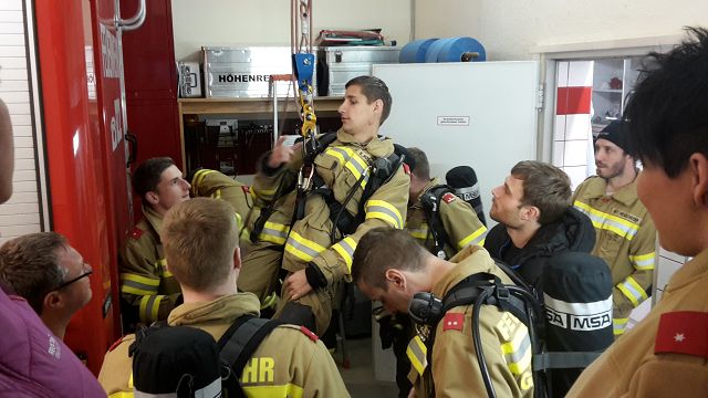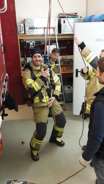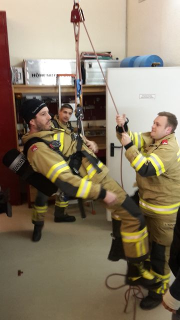 Für unsere AS-Geräteträger wurden integrierte Sicherungsgurte auf den AS-Geräten angeschafft und heute eingeschult. Diese Begurtung dient zur Sicherung des AS-Mannes beim Arbeiten in Höhen und kann als Abseilhilfe verwendet werden.