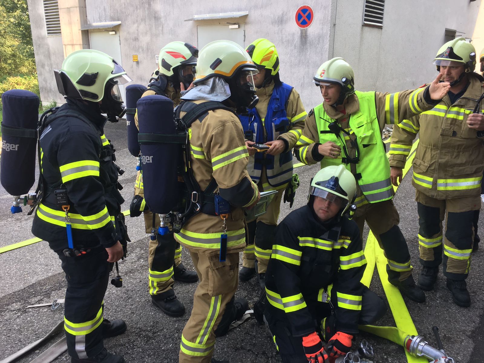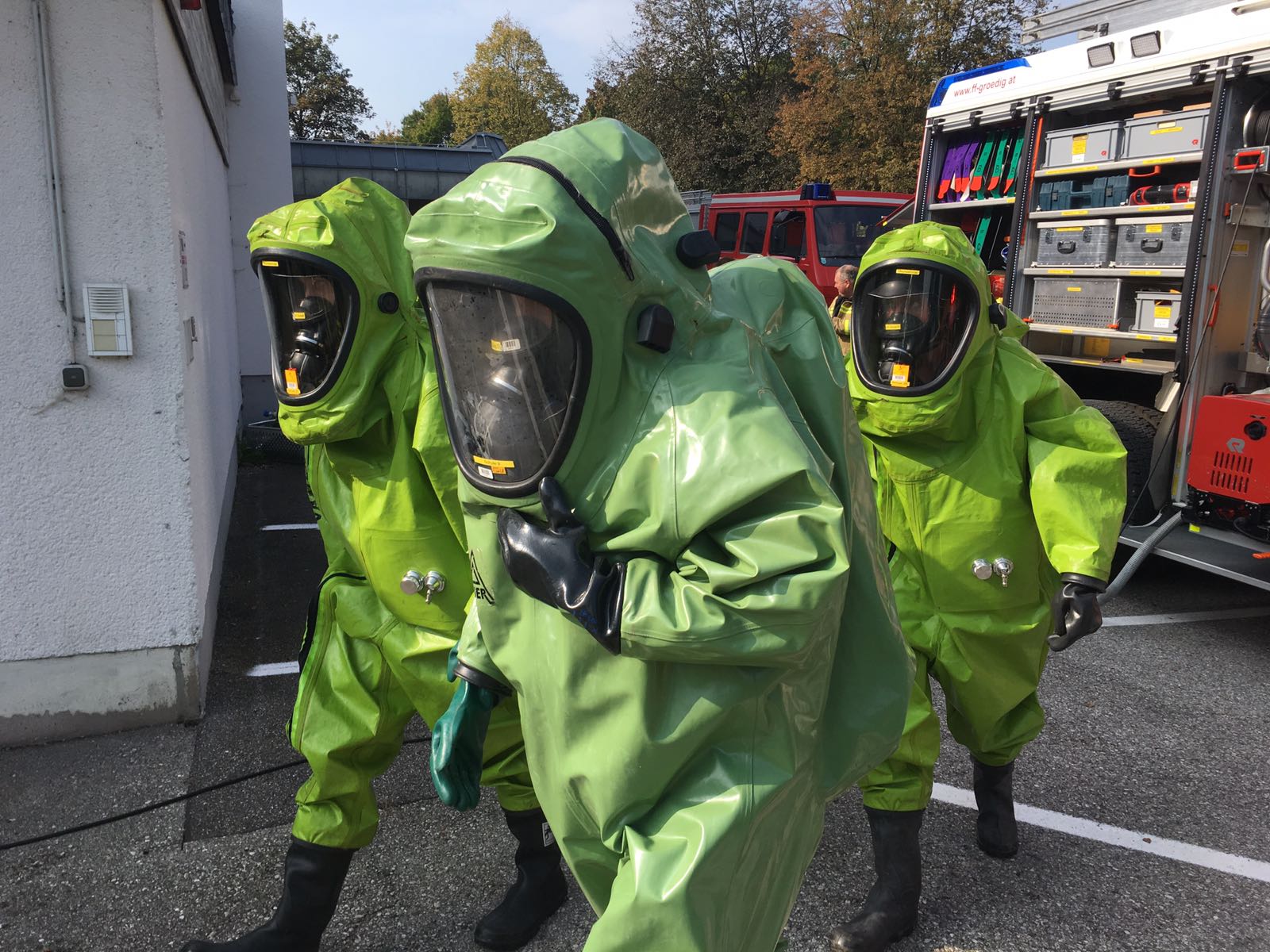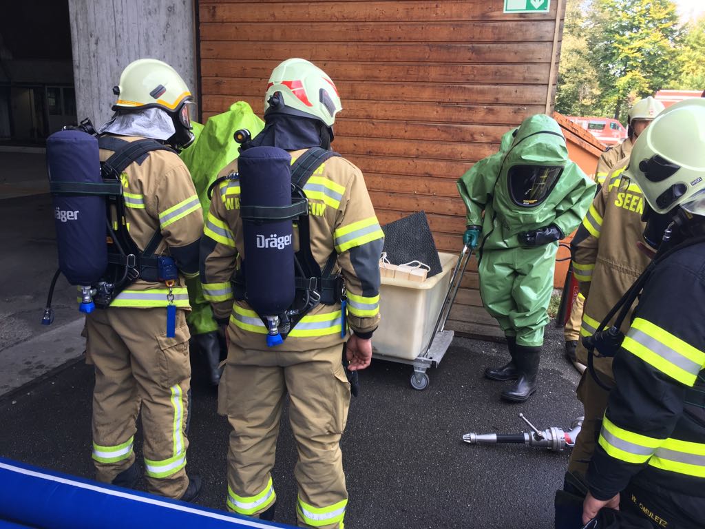 Schon am Vormittag wurden 2 Übungsszenarien durchgeführt, zum Ersten ein Laborunfall mit einer kontaminierten Person und im Anschluß ein Ammoniakaustritt.