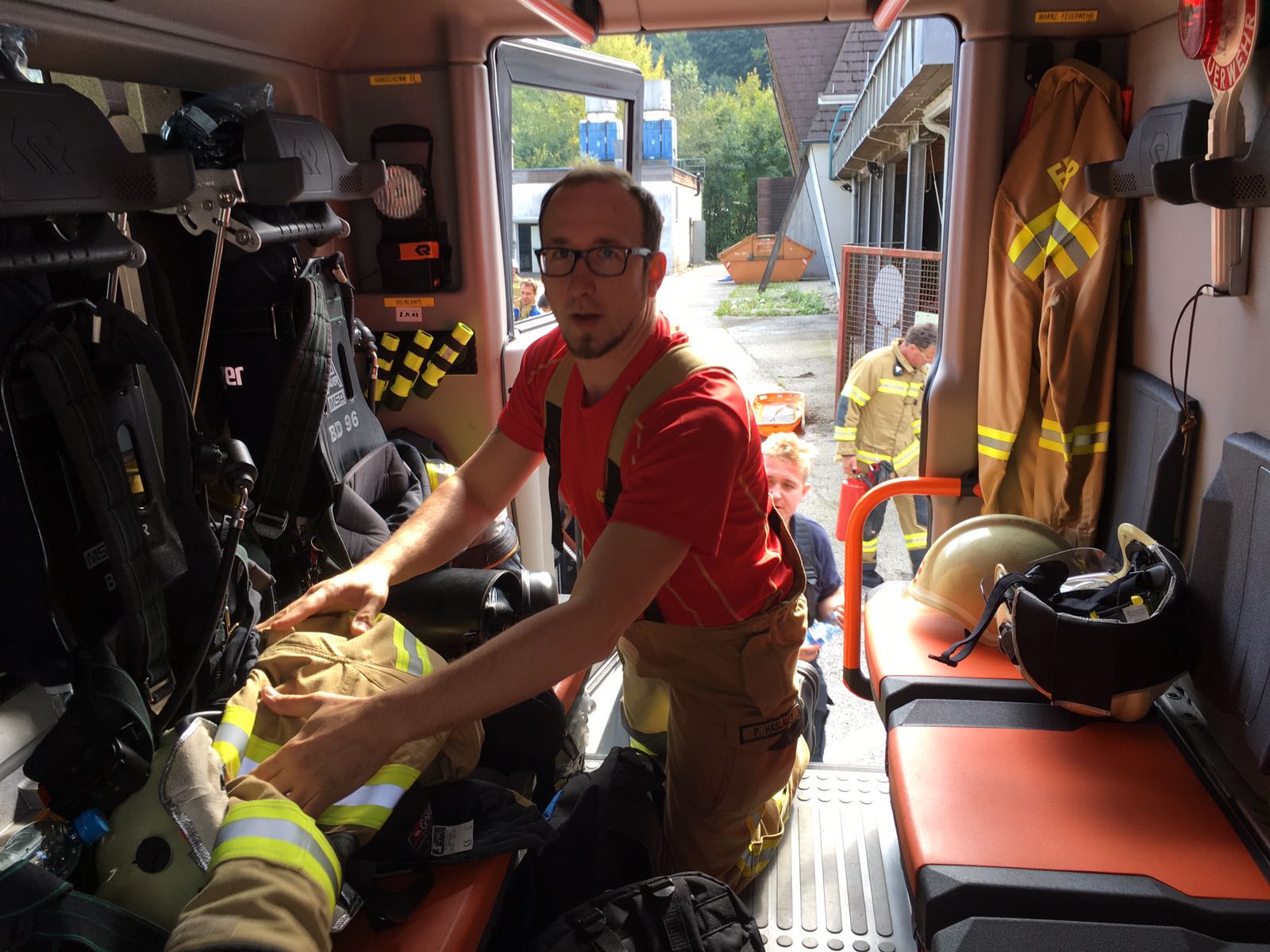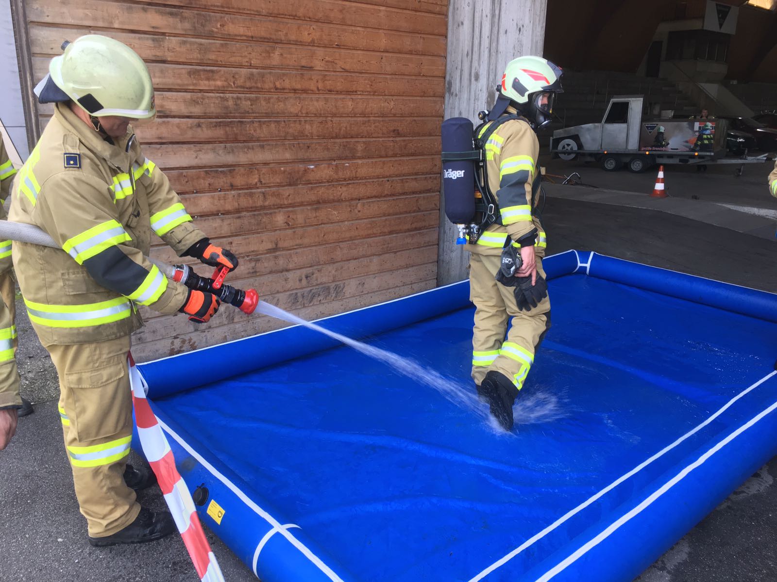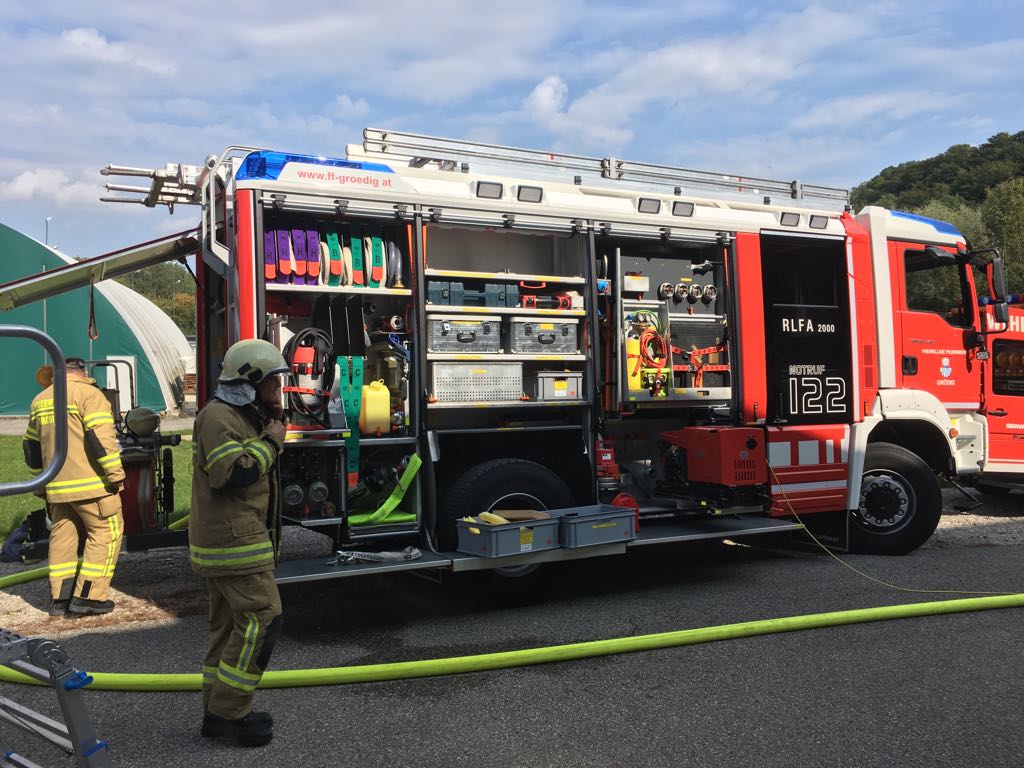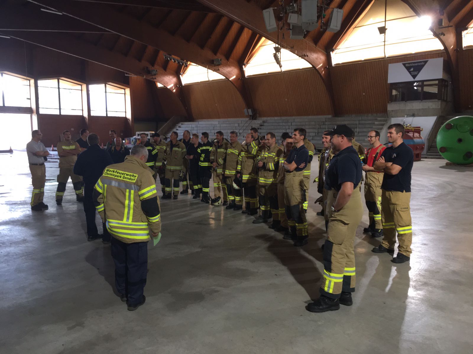 Zum Abschluß wurde noch eine Besichtigung der Werksfeuerwehr durchgeführt, die die Übungen informell begleitete.